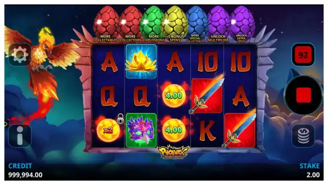 The game’s Scatter Respin feature allows two Scatters to become something more, while explosions transform symbols into valuable collectables. During Bonus Spins, the Phoenix Collect symbol dominates, gathering values and applying multipliers for large, consolidated payouts. Feature enhancements allow bonuses to scale rapidly.