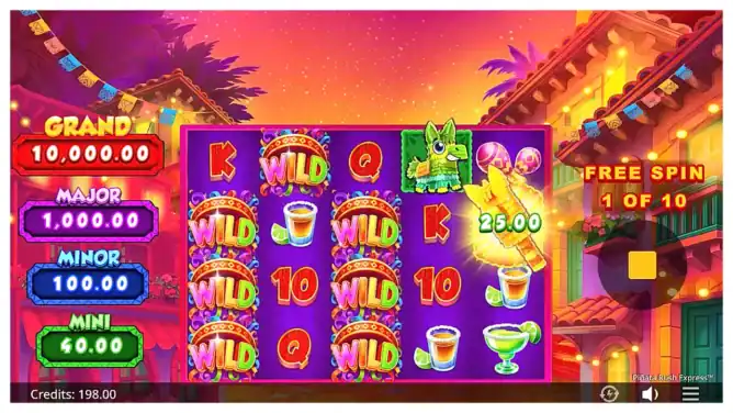 With a 5-reel, 4-row design and 20 paylines, Piñata Rush Express™ blends high volatility with festive mechanics that keep players engaged. Symbols cascade, multipliers explode, and coin rewards drop frequently. The 96.45% RTP and dynamic features like Piñata Free Spins and jackpot wheel rewards elevate every moment of gameplay.